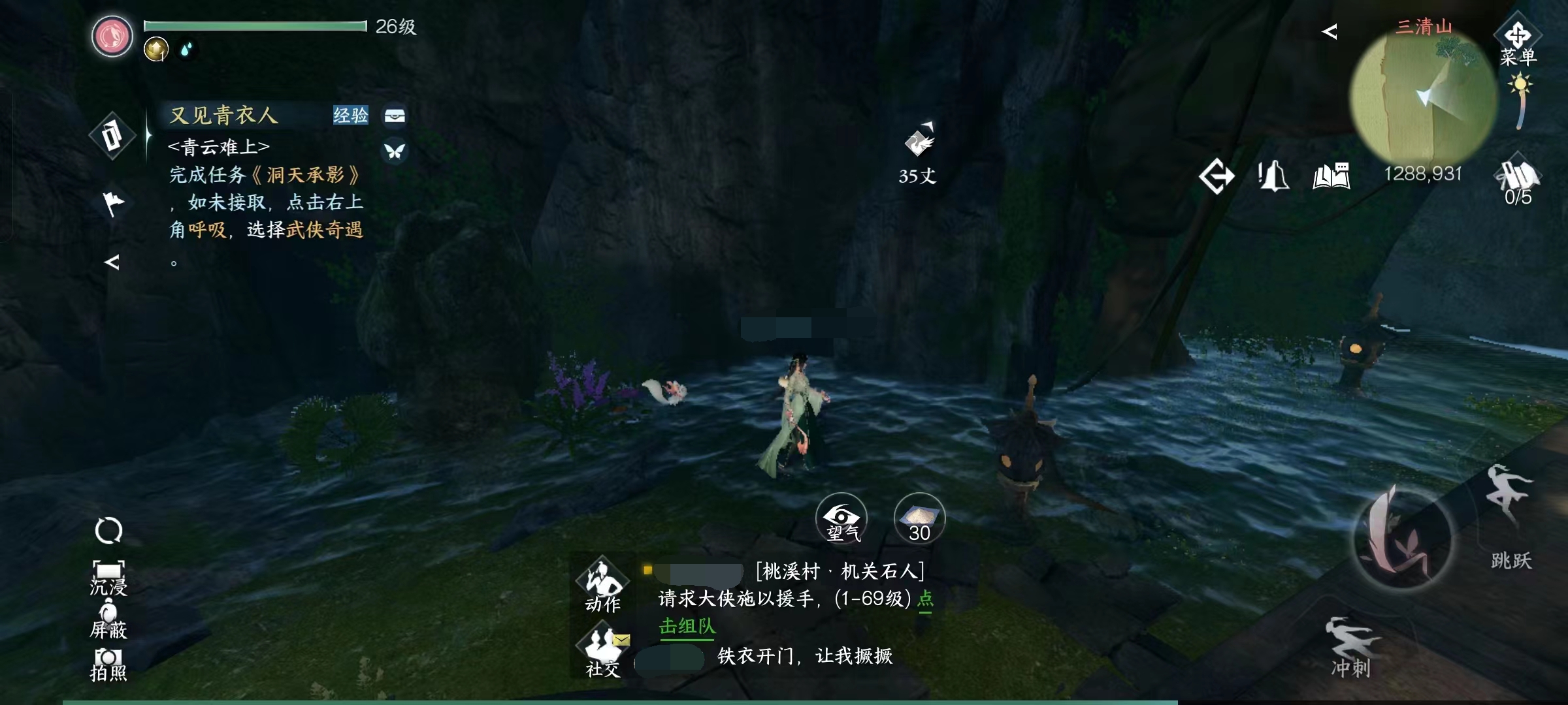 来到三清山坐标(1311,1048)处的悬崖跳下去解锁,首先到(1030,1047)找到神秘书籍,看完神秘书籍后接着去(1007,1069),在该位置会触发自言自语的对话,要选择【自由探索】,建议先不出去,在探索过程中可以获取风筝、明前龙井、文房四宝。最后点击望气,能够拾取到雨伞。