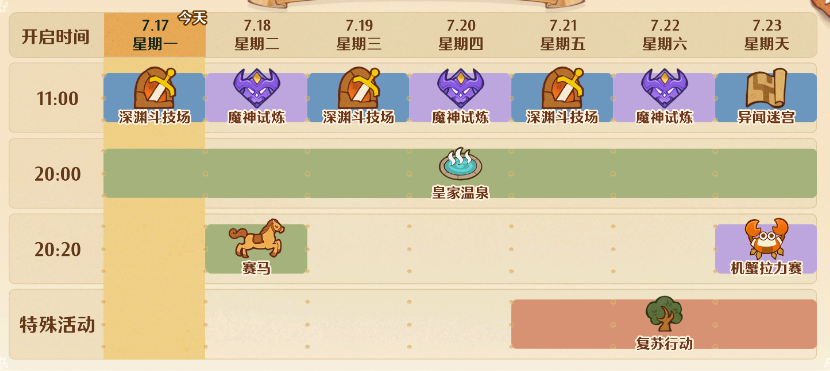 这款游戏内测期间给玩家们除了非常多的开服玩法,小编会给大家仔细讲解一下游戏中的时间限制,首先是每周一到周三还有周五的时候,中午11点会准时开启【深渊斗技场】,这个玩法就是玩家们所熟知的pvp战斗模式,玩家们需要3到5人进行组队,然后挑战7个不同的关卡。
