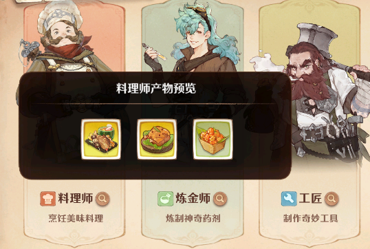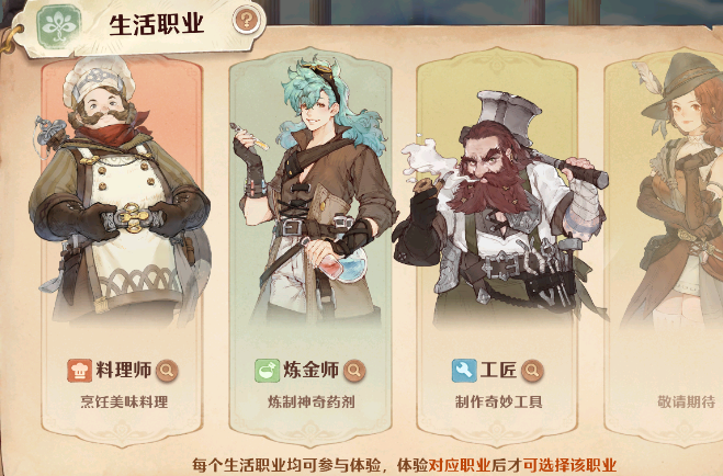 玩家们如果喜欢挑战竞技的话可以选择【料理师】优先,其次是炼金师,如果喜欢家园这个玩法的话,那就选择【炼金师】,如果喜欢采集玩法就选择【工匠】。