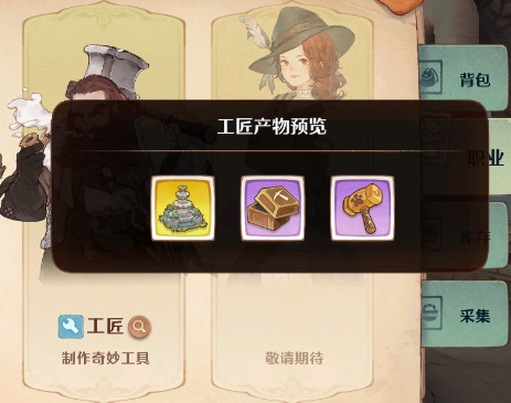 工匠:这个角色可以制作一些神秘的工具,因为在生活技能中有一个采集玩法是需要消耗一些工具的,比如钓鱼的鱼干,采矿的稿子,这些都是需要工具来进行制作的。
