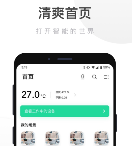在该智能家居设备当中,主要是为了方便大家的。在首页的智能推荐里,就可通过智能控制来让自己拥有着很好的休息空间。主要就是将自己家里面的一些设备安装成智能的,这样利用软件就能操控。比如在回家之前如果有做饭方面需求,就可先做好准备,然后利用软件就能完成制作米饭的过程。另外就是在炎热的夏天,可提前的开启适合的温度,这样回家以后就能在舒适的环境当中了,开启智能化的生活。