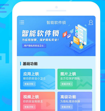 该智能软件主要是针对手机应用保护的,因为在每个人的手机当中,难免都会有一些不想让其他人知道的,比如QQ的聊天记录,或者是自己的微博信息、图片、照片等等。在不想让他人知道的情况下,利用软件就可进行很好的保护,它有很多种解锁密码的样式,比如指纹密码、数字密码等等。即使自己的手机并不具有这样的功能,软件也可设置,能更好的保护自己的隐私。