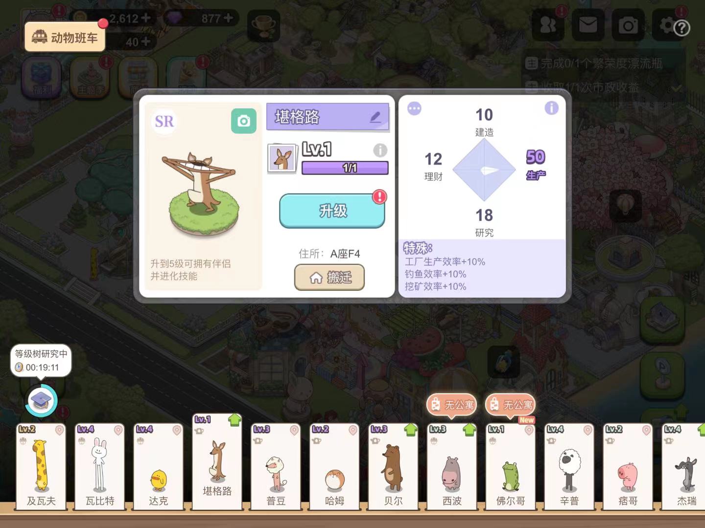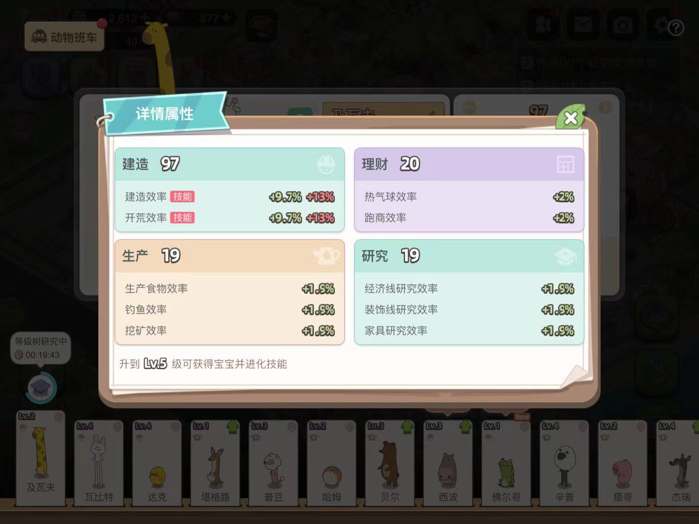 游戏内的动物居民属性共有四种不同的方向,分别为建造、理财、生产和研究。其中建造主要影响的是搭建(或升级)建筑物的时间以及开荒效率,而理财则与热气球订单和动物跑商息息相关,生产影响的是工厂生产效率和钓鱼、种田效率,至于研究则能提升各类研究玩法的效率,例如家具研究等。