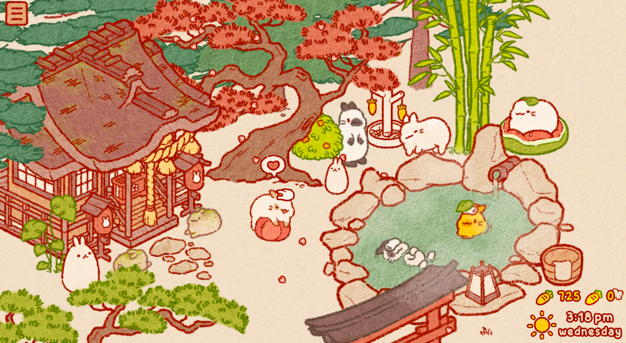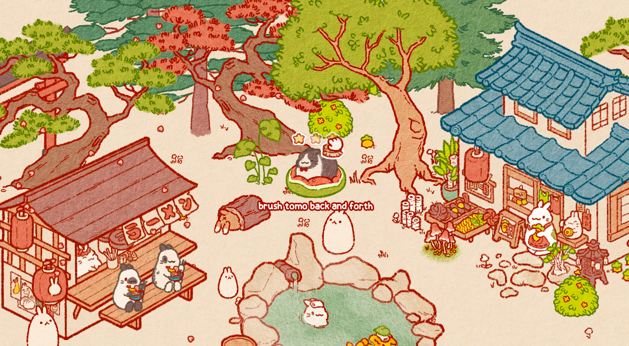 另外不同的动物伙伴们还会有自己独特的神态与动作表现,它们在感到惬意的时候会露出不同的神态,你还可以抚摸它们来增进彼此的感情,这些互动配合简约的画风能让玩家感受到精神的慰藉,游戏的整体氛围也得以更加放松。