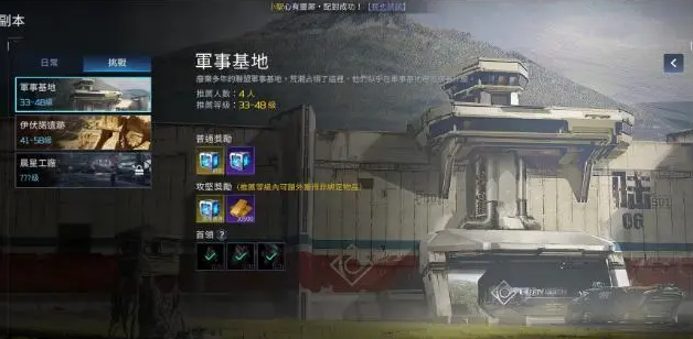 军事基地是星球重启这款手游中的一个神秘而危险的区域,它隐藏着许多有价值的资源和装备,但也充满着各种敌人和机关。下面就来讲一下星球重启军事基地攻略。如果你想成功地探索军事基地,你需要有一定的战力和装备。里面有许多有用的资源和装备,但也有很多危险的敌人和机关。如果你想顺利地探索军事基地,你需要注意以下几点: