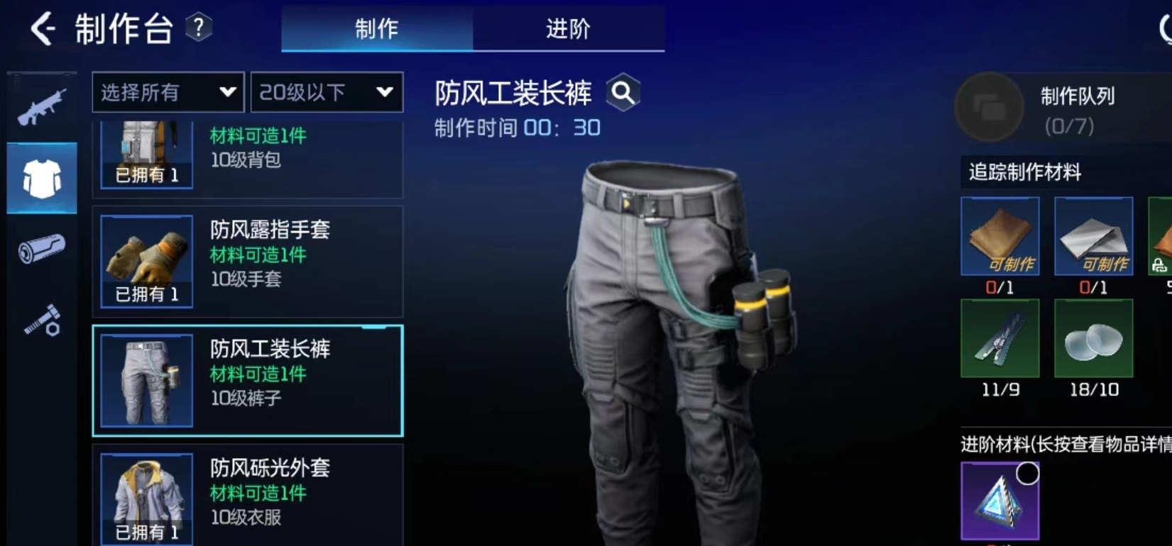 防风手套的制作需要是一个螺丝钉,九个拉链,一个陶瓷,一个粗布条和四个轻皮,放风收到,适合进行户外操作。采用特殊材料制作,柔韧度高方便作业,可以提高7点暴击率和13点攻击力。防风长裤适合进行户外活动,制作时需要十个镜片,九个拉链,四个金皮,一个粗布条和一个陶瓷,玩家装备后可以提高27点生命值和12点护盾值。