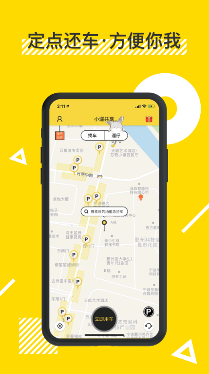 这款共享车软件提供了城市的简单代步助力车和常规汽车两种模式选择。用户可以通过该软件一键预约一辆离你最近的车辆,并指定使用车辆的时间和地点,确保预定地点有车辆可供使用,省去了匆忙中找车的麻烦。此外,在行程中,该软件还提供了贴心的临时锁车功能,允许用户在下车期间,例如上厕所或者买早餐时暂时锁定车辆而无需支付额外费用,同时也能防止他人盗用车辆的情况发生。