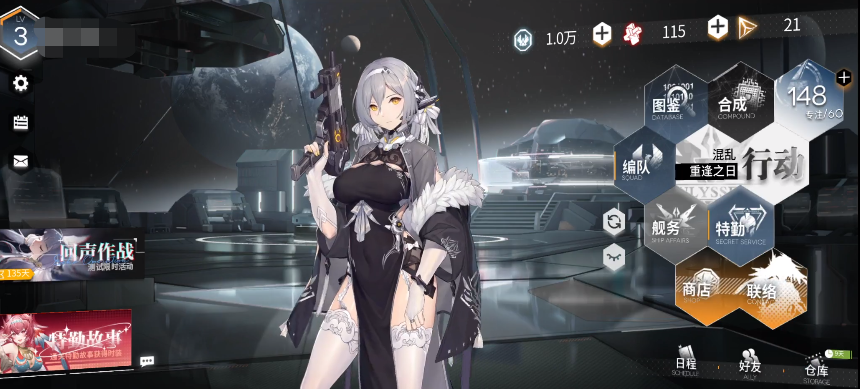 游戏的主界面背景非常别出心裁,它其中有璀璨的星空,以及各种高科技建筑,另外主要的选项它都汇集在右边的屏幕上,对于玩家来说操作会更加便捷,此外,主页的常驻角色还可以自由更换,闯关之余还能够让你自由自在的去欣赏自己队伍角色的盛世容颜。
