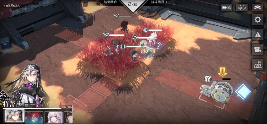 在战斗环节,角色则会呈现出她们Q版的姿态,通过俯视的视角,玩家能够清晰的观察全局动向,关卡过程中会出现许多不一样的奇特敌人,它们机械的身躯和特殊的能力都给玩家们带来了各式各样的挑战,通过搭配不同的阵容,并进行一定程度的培养,可以让玩家在策略玩法上获得更好的体验。