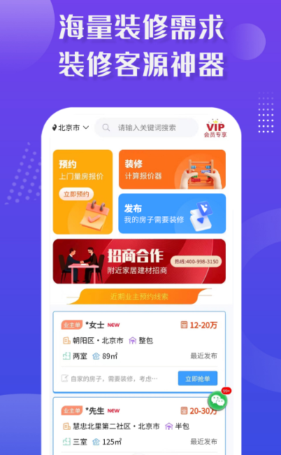 无论是家装、公装、还是全屋定制、设计房子等等,都可从该软件上找到工人,并且已经有上百万的客户选择该软件,来进行房子装修,能够根据用户的需求达到用户满意的效果,而且在该软件上的业主都是真实预约,系统也会随时随地的接单,工价透明、没有隐形消费,让你轻轻松松的找到理想的装修工人。