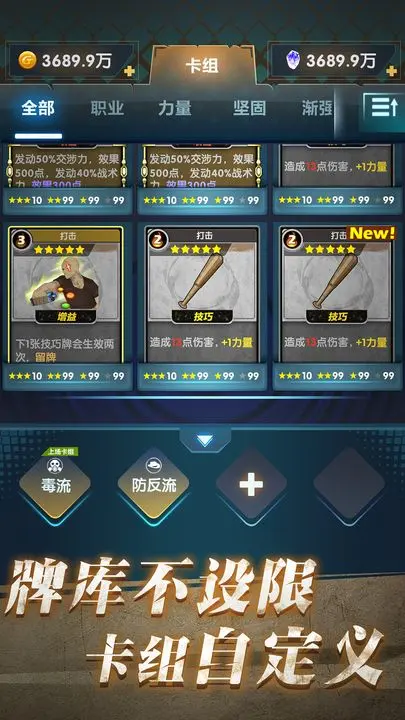 玩家们可以寻选择自己最喜欢的50张卡牌来进行备组,如果有两张一样的卡牌就可以进行升级,对卡牌进行养成的双重玩法,每一个人都可以通过自己获取到的卡牌进行挑战,卡牌的职业也是这款游戏出圈的一个原因。