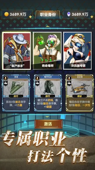 游戏中的每一个角色都有20多种专属的卡牌,玩家们可以非常轻松的就打造出自己喜欢的卡组,而且游戏中还有新出的【游民】和【猎人】以及【毒师】这三个职业,玩家们可以进行5人组队,这个时候就更加考验玩家们对卡牌的了解程度了,需要灵活的运用手中的卡牌,来选择逃生还是去救援。