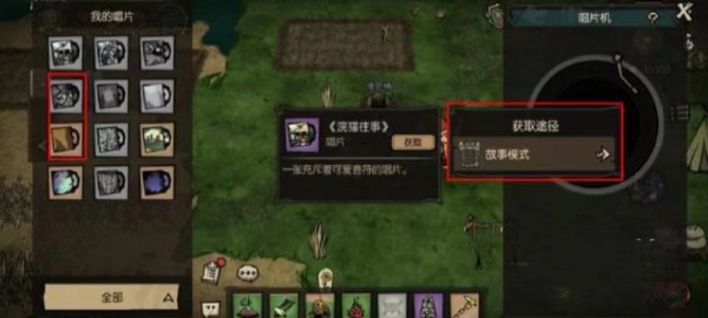 玩家只需要将唱片机给打开,然后在左边就可以看到灰色唱片和彩色唱片,灰色唱片意味着还没有拥有,彩色唱片则是是已经拥有的,如果玩家想要获取黑色唱片,那可以点进去看一下他的获取途径是什么,然后再根据方法去获取就行了。