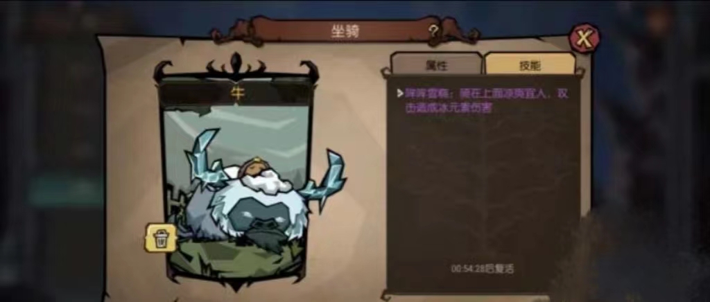 不过等到陷阱放置以后,没有使用的话,是可以再拿回来重新利用,除了牛以外还有其他的坐骑都可以通过这种方式去捕捉,当玩家捕捉到了以后,可以在坐骑的页面去查看一下目前玩家所拥有的坐骑以及他的驯化程度,等到成功驯化完成之后,就可以召唤它来使用了。