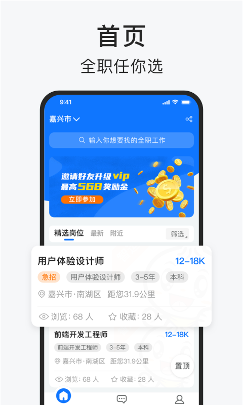 58同城,提取这一款软件,大家都不会陌生吧,因为它是使用量最多的一个生活服务类平台,并且它还包括找工作的模块供大家使用,在这款软件上,我们不仅可以找到本地附近的岗位信息,而且还可以搜索到自己意向城市的求职信息,我们可以自由选择非常的人性化,并且软件非常注重用户的体验,我们可以及时的向客服反映,我们求职过程中遇到的种种问题有很多优质客服都会帮助我们一一解答求职过程中的问题。
