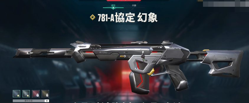 781-A协定:该皮肤和上面的光炫声谱可谓是截然不同的两种风格,它采用了比较深沉的暗色调,并且整把枪采用金属感较强的黑色和灰色交织,整个枪械看上去较为厚重,而且隐约间有一种机甲的风格,它在射击时的音效和震动反馈上也是很有打击感。