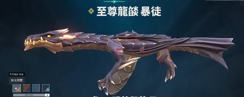 至尊龙焰:这个皮肤完全颠覆了狂徒本身的外观,它直接使用了一条黑龙覆盖住整个枪身,并且实战中行动的时候,还可以看到熔岩般的火光在龙鳞之间流动,特效方面非常的不错,并且它还有多种配色,能够改变龙体内的流光。