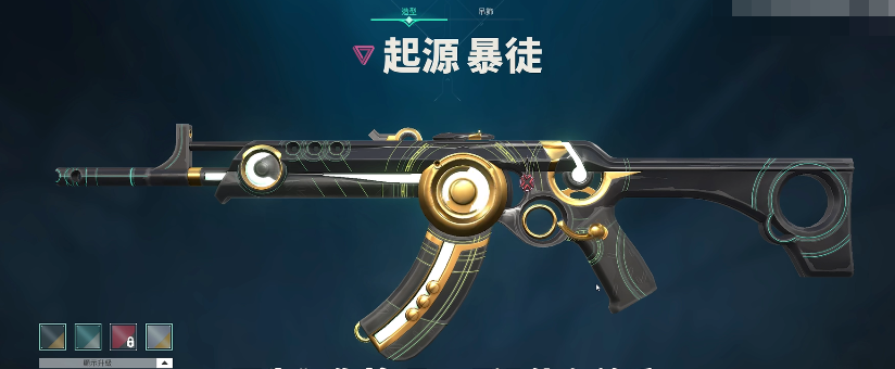 起源:它枪身上的几个圆形区域都是动态的,实战中会缓缓的转动,而且其射击音效比较沉闷,在实际使用过程中非常有质感,同时其黑金的配色也让枪皮本身的格调显得更加尊贵。