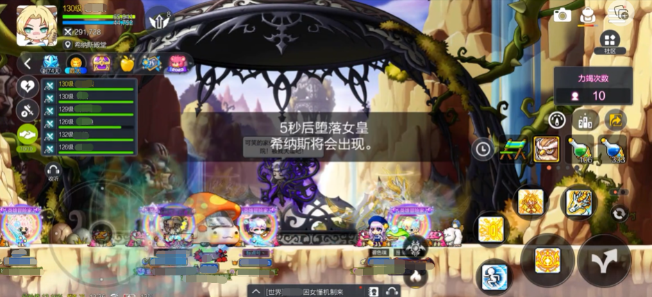 最后一个BOSS是黑魔法师,这个boss有两种形态,在第一形态的时候大家可以先攻击右边的骑士,但是需要注意躲避一下骑士 的连锁技能,到了第二形态的时候,大家就集火打白骑士,最好是选择技能性比较高的角色分担一些伤害,也可以多使用枫叶这个道具去净化。