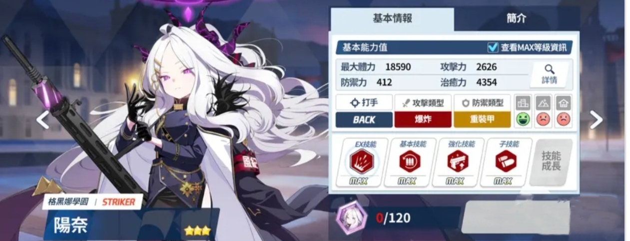 而她的定位是三星级输出突击型角色,也是作为一个后排位置来进行爆发输出的,防御的话选择重装甲比较适合她,同时她所属的阵营是歌赫娜,因为雷厉风行的作风也让许多和歌赫娜作对的角色组织对她有着天然的害怕。