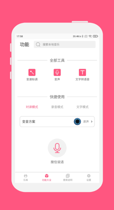 这是一款非常实用的变声app,玩家们在游戏直播或者是自娱自乐时,都能使用此款app,海量语音包随意挑选,聊天变声器,随时畅聊乐趣无穷,能够随意调试超多变声特效以及混音,萝莉音,正太,御姐,小孩以及幽灵等等,随时切换都可以。