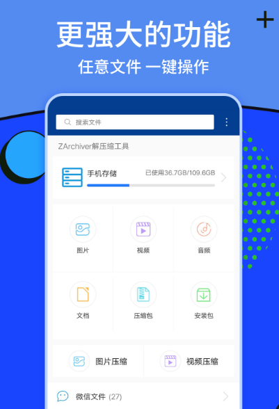 该软件在职场中被大众人群所广泛使用,能对多种类型文件压缩与解压缩,不仅好用而且有专业的加密功能,对于自己不想被别人看到的图片、视频及重要的文档,都可进行加密,轻松的将你的隐私保护好,而且具有急速解压功能,支持一键解压、加密解压、支持多种格式操作,拥有这款软件,就像是手机上多了一个私人空间一样。