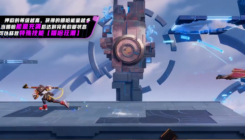 第四项技能是嘻哈狂潮。猴子会用他们的专属武器来触发大型攻击。首先,他们传送到敌人的头部,然后使他们的金棒变得巨大而不可战胜,然后将其重重地砸在地上,给对手造成恐怖的伤害值,可以直接将敌人一半的血条值攻击掉。