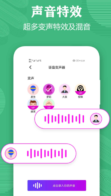 知道那些经典的云龙兄语音是哪里来的吗?知道那些甜甜的声音是哪里来的吗?不错,就是这里!找到你喜欢的声音直接收藏快速转发,不管是游戏还是社交软件都可以轻松套用!看到喜欢的语音素材无限制收藏哦!除了针对游戏和自己变音的软件之外,还有超多生活素材可以给你使用,让你在生活中变得更加有趣!