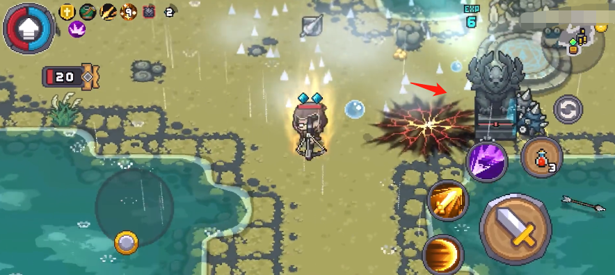 另外该boss的防御力比较出众,所以最好拿穿透力强的武器进行远程打击,先前在地图店员那里买的蓝色弩箭正好就可以派上用场。