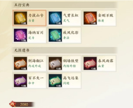 其次大家在上面也可以查看武学,武学功法上面大家就可以点击一键修炼,在一键修炼之后五行宝典中的属性提升的会比较明显,因为五行宝典中实际上就是角色的生命、灵力以及力量等等书中,而想要修炼内功外功的话,大家就需要去查看无涯遗书,这各页面大家就可以查看到功法的属性啦。