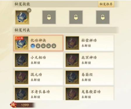 其次大家后期到五十多级之后还可以解锁秘籍进行修炼,这些秘籍里面的功法跟技能一样是可以修炼升级的,不过这里修炼是分成参悟以及进阶的,参悟更像是学习,进阶的话对于功法上卖弄带来的效果是最好的,所以大家要是修炼秘籍的话还是要专注于进阶。
