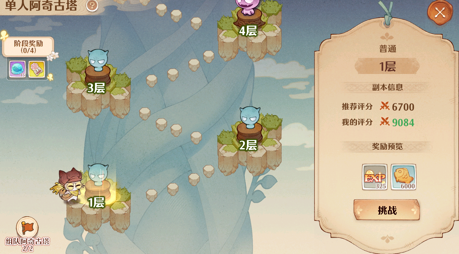 阿奇古塔有单人爬塔和组队爬塔两种模式,这里推荐选择前者,因为省去了组队的麻烦,而且单打的话你的猫灵还有额外的减CD,所以综合难度并没有高多少,甚至因为是单人的情况,所以每层塔所需的评分要求还变低了,因此挑战起来会更加容易,然后就是在单人爬塔的时候职业一定要选好。
