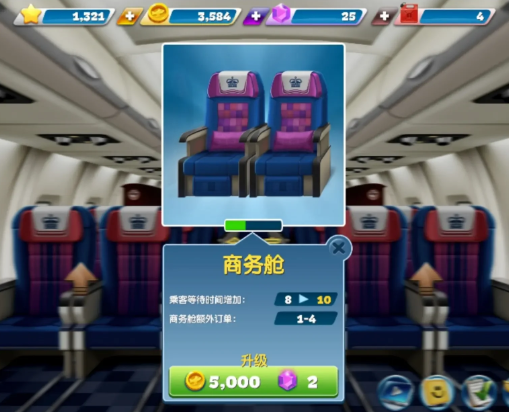 玩家们需要通关【丹佛】和【纽约】菜可以解锁到【伦敦】,而这次的难度已经发生了实质性的变化,玩家们在这一关必须要小心应对,同时对于飞机上的器械和厨具都是需要有策略性的进行升级。经过前几个地图的积攒,玩家们手上的金币应该都比较充足吧,推荐玩家们优先把客舱作为升级到【商务舱】可以让乘客等待的时间从8秒变成9秒,而且可以额外获得1到4份订单,需要花费五千金币和两个紫宝石。