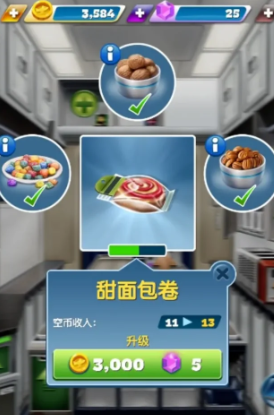 升级完成后返回客舱要开始升级厨具了,因为升级所需要的材料也是需要好好计算的。