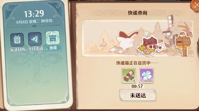 玩家们在游戏中可以直接进入【快递】领取界面,其实这是策划给玩家们设定的一个领取奖励的玩法,玩家们只需要在线一定时长就会获得相对的奖励,在线时长越就获取的奖励就会越丰富,领取一次后时间会重置,慢慢的增加下一次获取奖励的时间,也是比较好理解的。