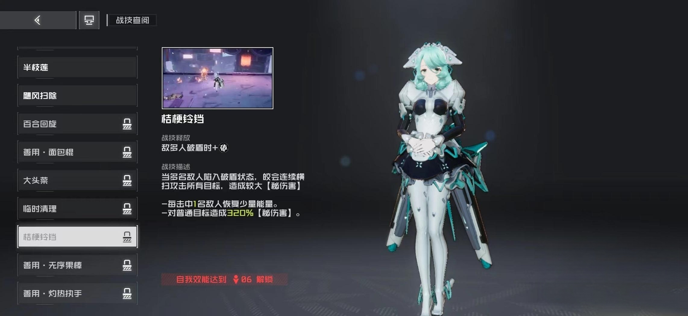 此外“桔梗铃铛”也是皎的一个强力技能,它本身需要有多名敌人被破盾的时候才能施放,施放后会以连续横扫的方式来攻击多名对手,这个技能本身有着较高的基础伤害和较大的攻击范围,并且本身还会随着击中敌人的数量来恢复能量,敌人越多则自己恢复的越多,这也方便他快速积蓄能量以此释放其他强力技能。