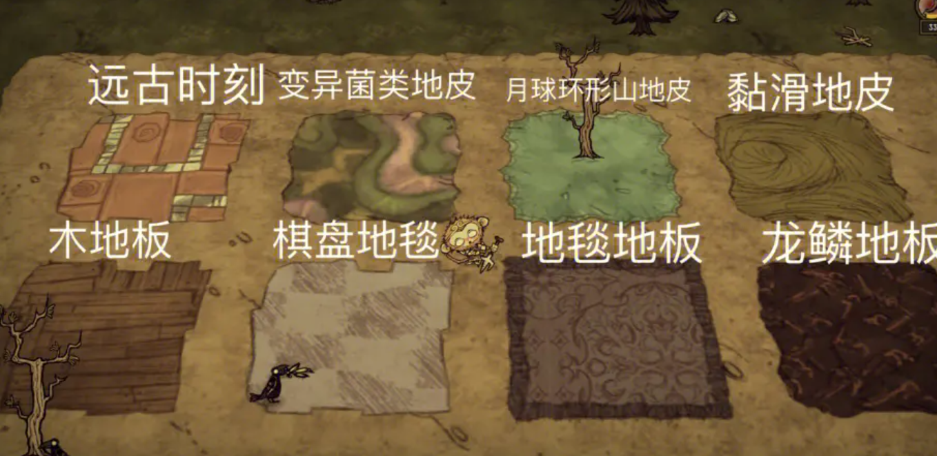 尽管木地板有许多优点,但也存在一些局限性。一些植物如浆果丛、草丛、树苗等无法种植在木地板上,除非它们在地皮放置之前已经种植。这需要你在选择种植位置时进行合理的规划。在饥荒新家园中,还有其他类型的地皮可供选择,包括鹅卵石、地毯地板和棋盘地板。每种地皮都有其独特的特点和用途,玩家可以根据需求和创意进行选择。