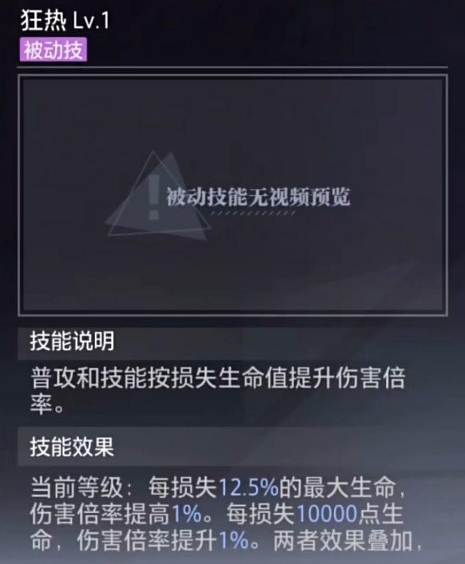 狂战士在技能释放时会消耗他自身10%的生命值,然后将这些生命值转化为一层血气屏障来保护自身,用来吸取伤害,如果遭到了致命一击时,那么他的生命值将会固定为一这1数值,这一数值在之后的十秒内还会让它自身增加吸血效果同时在十秒过后还能结算一定的治疗效果。
