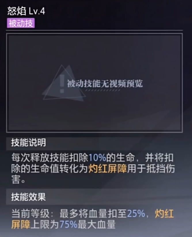 首先玩家们要做的就是要通过怒焰将它自身血量降低然后转化为屏障保护自身,值得注意的是一定要在血量还不错的情况下在使用该技能这样的话可以保障自身生命安全,同时要在没有损耗自身血量的情况下去获得狂热的加成,先释放伤害较低的技能,然后再配合怒艳一技能降低自己的生命量,等到狂热的被动效果触发过后,就可以提升他的技能输出了。