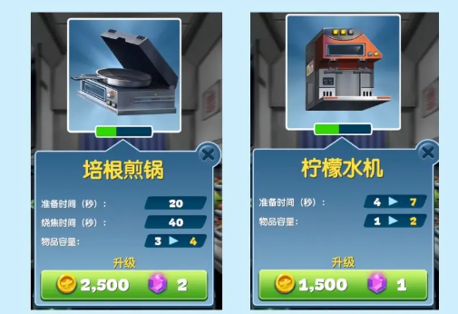 【培根煎锅】主要用于加热培根,这个在30关的时候会开启培根需求,前期是没有的。
