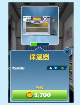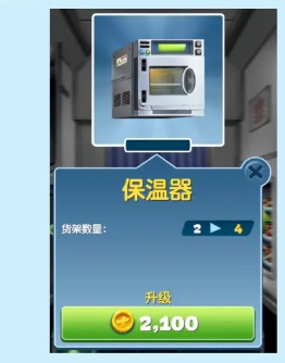 【保温器】这个厨具主要用于储存汉堡和三文鱼的,因为加热超过一定时间食材是会坏掉的,也是比较真实了,玩家们在加热的时候可以先使用保温器里的食材,这样可以形成一个循环,不会因为食材没有而担心,