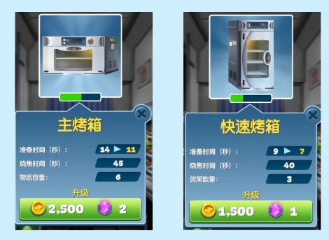 【快速烤箱】这个烤箱是玩家们在游戏中加工【炸鸡】的,这个是游戏中一直需要的食材,玩家们可以在10关卡的时候对这个厨具进行升级,可以帮大家在前期获得高分。