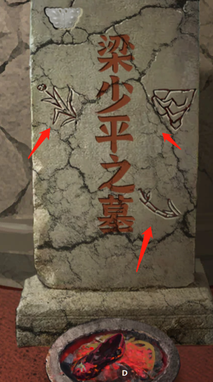 4,返回座椅区,点击墙壁上的相框,根据墓碑上的方向转动相框。注意:线索答案在墓碑上可以查看到。然后就可以获得新娘鞋,把获得的物品拿到墓碑前烧掉。
