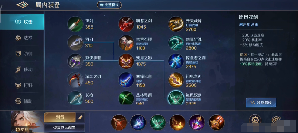 刘备的出装应该以提高物理攻击和暴击率为主,同时也要考虑一些防御和生存能力。推荐的出装顺序是:定位星盘、狂风之靴、[无尽之刃]。定位星盘可以增加刘备的移速和攻击力,并且可以在使用技能后提供额外的普攻伤害。狂风之靴可以增加刘备的移速和攻速,并且可以减少瞬息千里cd。