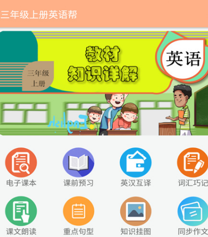 是专门针对于小学三年级推出的软件拥有众多优势,其中有很多功能,比如预习帮、学习帮、练习帮等。分为三个不同的板块满足课前预习、课中学习、课后练习等一系列需求,在预习时引导学生通读课文,学习时对各个单元进行知识归纳,包括语法、句型等一系列总结,课后有很多同步练习、巩固知识、提高适应能力。