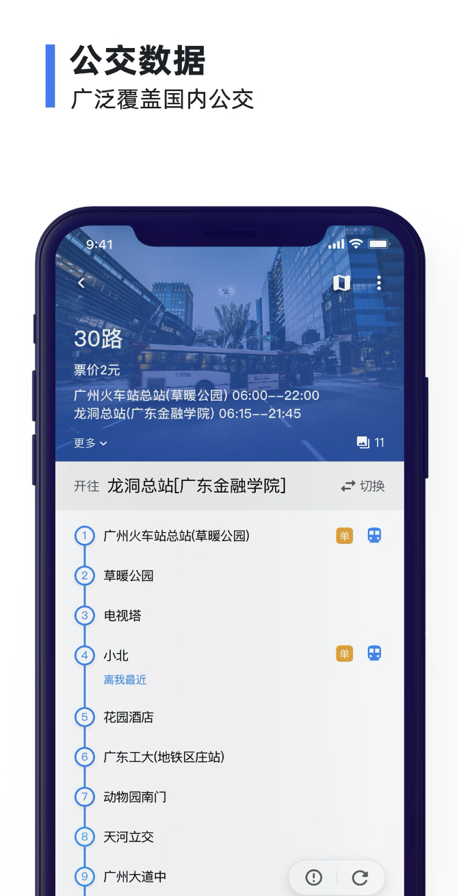 这款应用设计的非常人性化,它将互联网时代的科技与现代生活相结合,开发出一款乘坐公交车的软件,用户在这里可以实时监测公交车动态,还可以为用户指定到达目的地的路线和最合适的交通方式,这里可以定位你的位置,为你寻找附近最近站点和公交车到站时间,这样用户在等待公交车时不是盲目等待,可以提前做好上车准备。
