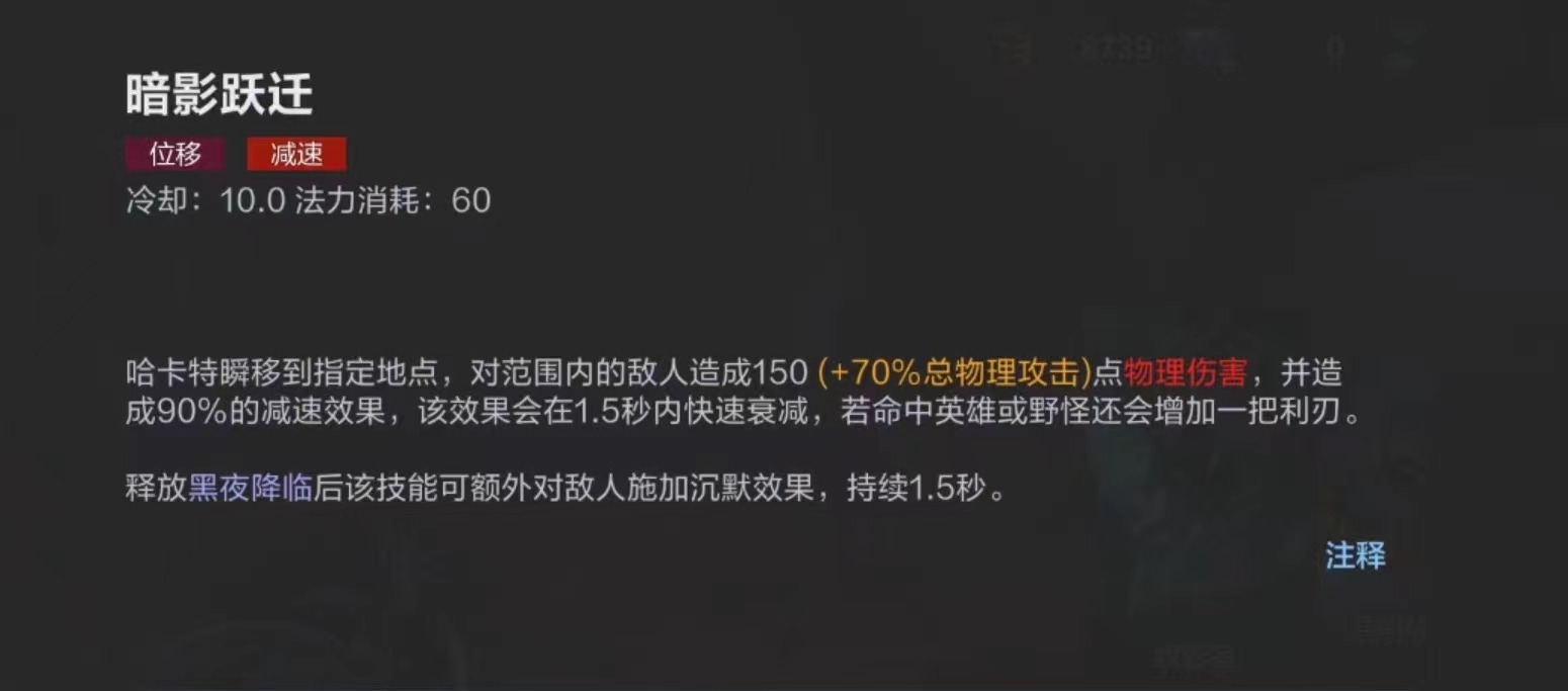 第1个技能可以瞬移到你想要的位置,而且在瞬移过程中,可以对这个范围内所有的敌人造成一定的伤害,在释放这个技能的时候会对敌人造成控制或者沉默效果,冷却时间为4秒,每4秒可以使用一次,但是沉默的时间会持续1~1.5秒,所以玩家可以利用这个技能。