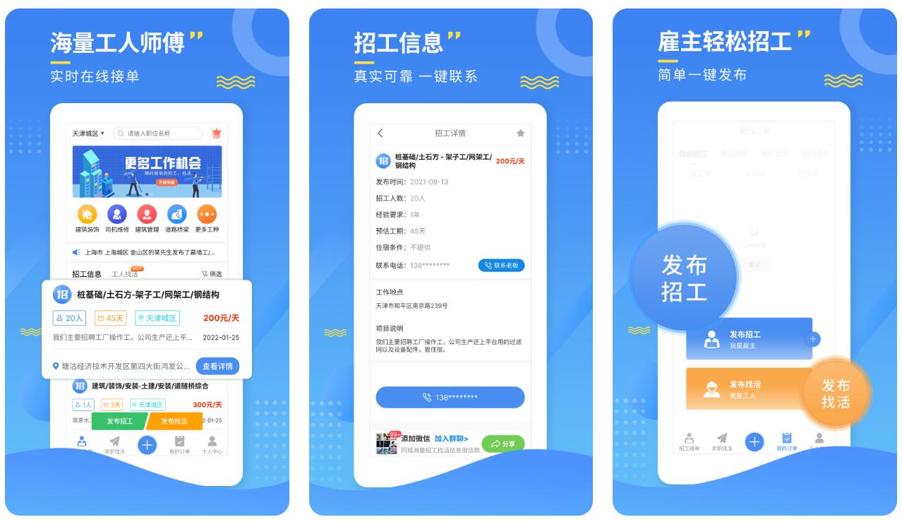软件可以针对用人单位来快速实现招工,而对于工人用户来说,则可以直接进入到app内接单,拓展自己的客源。目前,在招工的过程当中,各位也需要认真填写相关的用人期限,短期还是长期都需要表达清楚,因为平台的审核非常严格,这也是为了保障双方的利益。