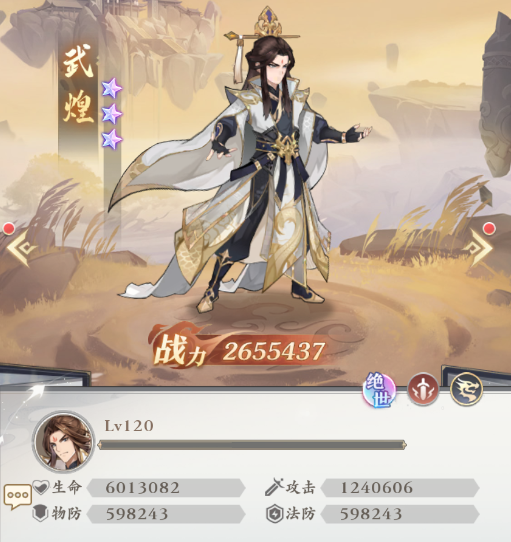 武煌是攻击类职业,所以属性最高的也只有攻击了,1240606的数值达到了游戏内比较拔尖的水准,抗性与生命则只能算一般般,不过考虑到它的定位,整体来看还是瑕不掩瑜。