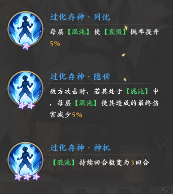 觉醒后的过化存神系列被动,还能为苍渊提供包括回血,减伤以及更强的控制触发率和控制效果,这些都与前面的自带被动与怒气技能交相辉映。